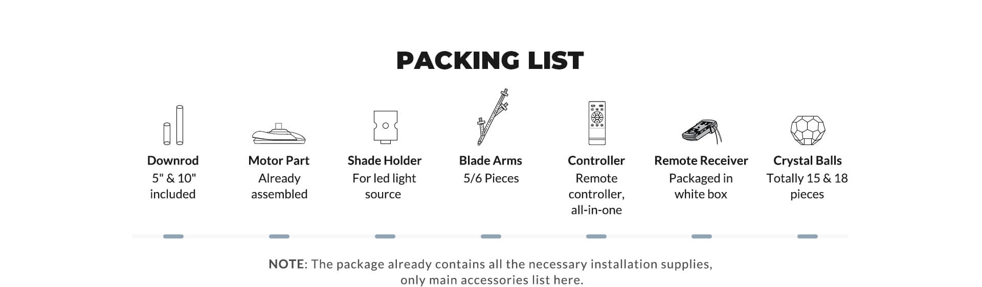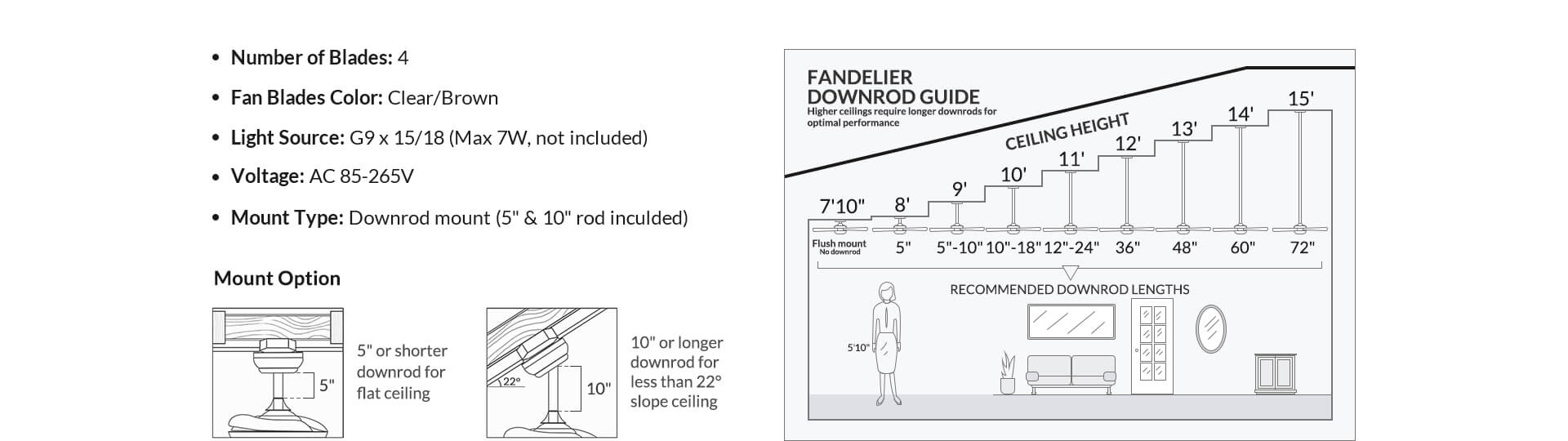 | 2 Downrod | 5" & 10" (Included) |